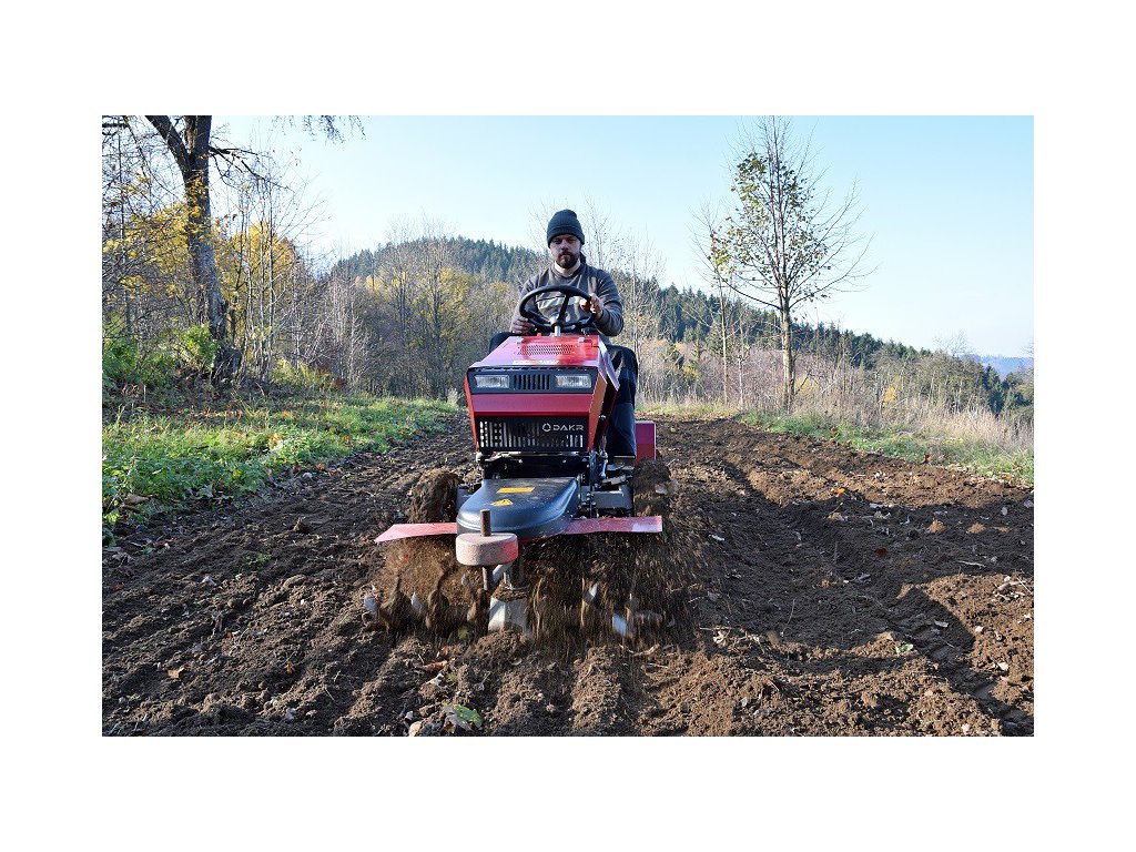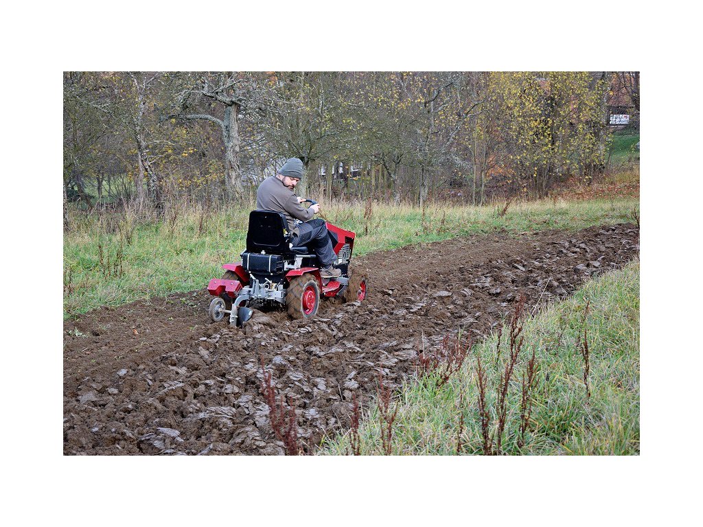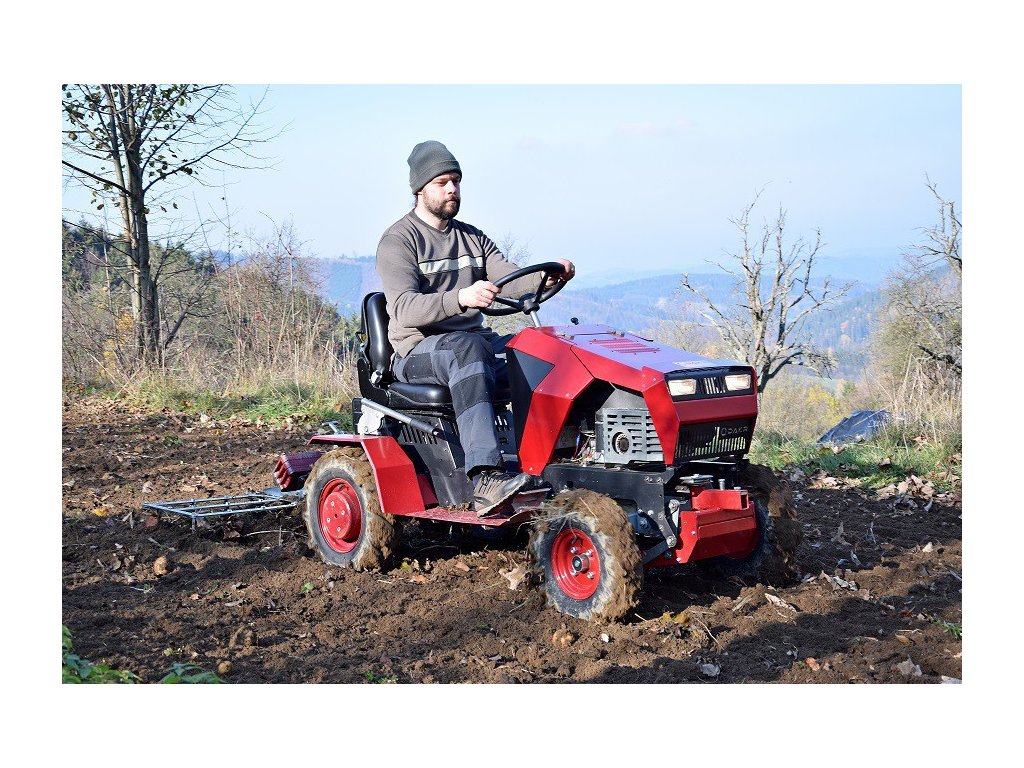 - Volitelné příslušenství, které není v ceně stroje: zadní nosič pro připojení nastavovacího tělesa, pluhu, radlic, bran, atd., závaží do kol 2 x 13 kg, závaží na zadní návěs.